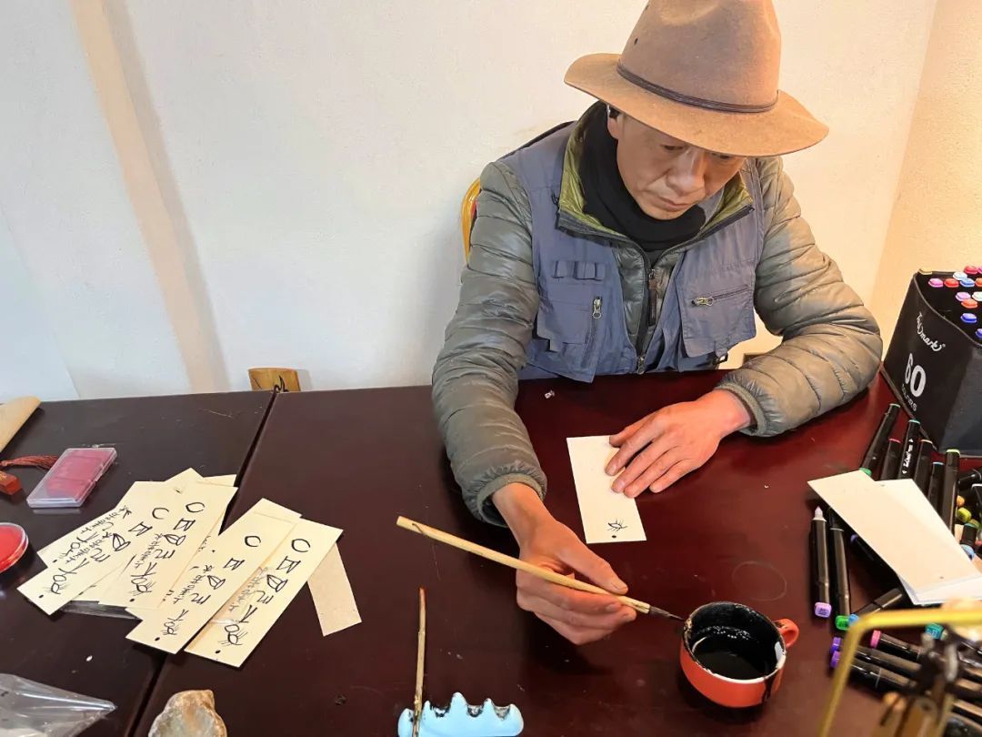 ▲牛哥在写东巴告示签 图/南边东说念主物周刊记者 杨旻洁